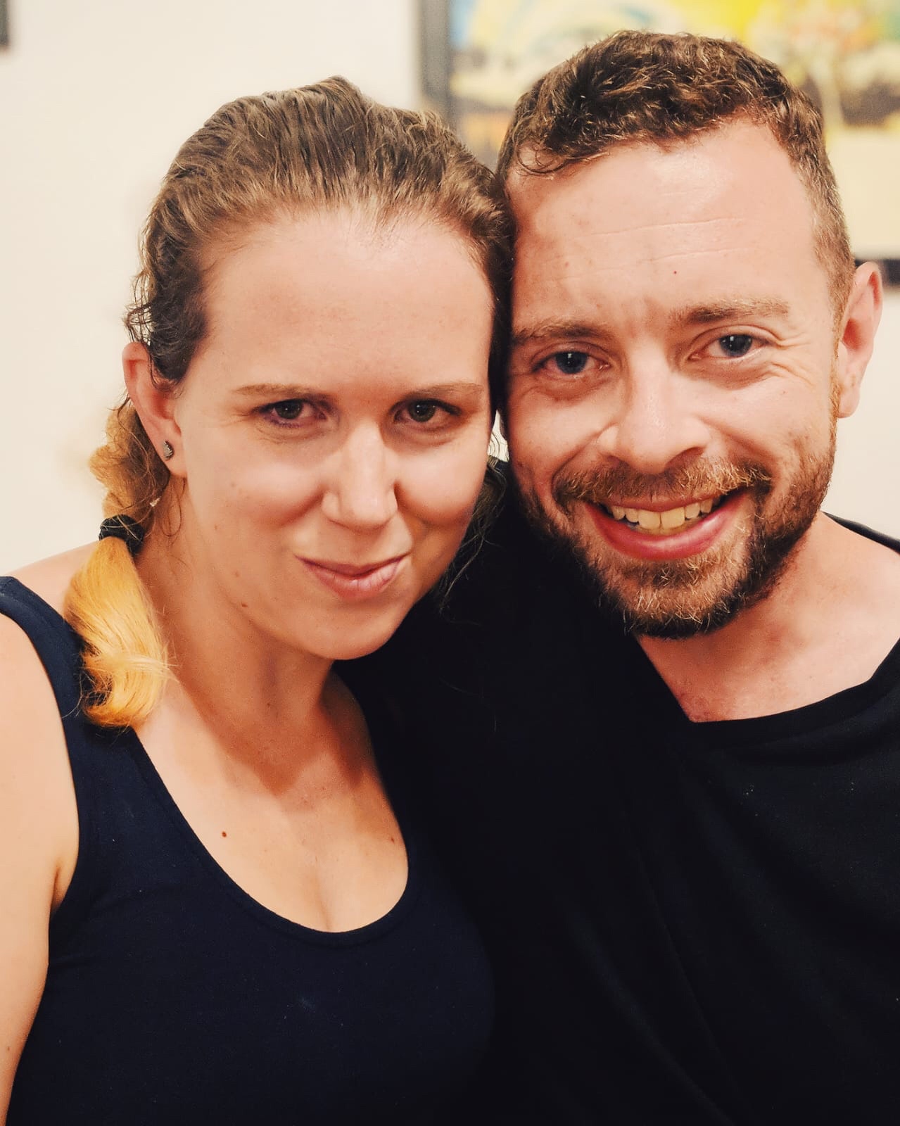 Photo of Laura and I after a delicious dinner that featured a lot of fresh produce from the market. Happy to be hosting her and Zach (behind the camera) over the long weekend ?