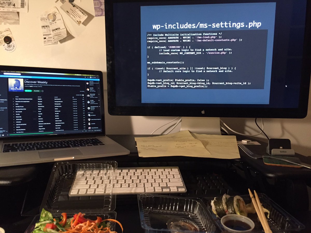 Sushi for dinner and wordpress.tv to accompany. Would be nice if it could be cast/streamed to an actual tv 😄