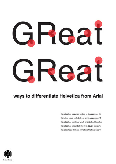 GReat Ways to Differentiate Helvetica from Arial, a print by George Drury.