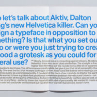 Helvetica may be the world’s most popular typeface but one man is having none of it. Type designer Bruno Maag of Dalton Maag, views Helvetica’s popularity with a mixture of bemusement and irritation. So he has decided to do something about it. With the Dalton Maag team, he has created Aktiv Grotesk, a typeface designed to provide an alternative (and, he hopes, improvement) to Helvetica.