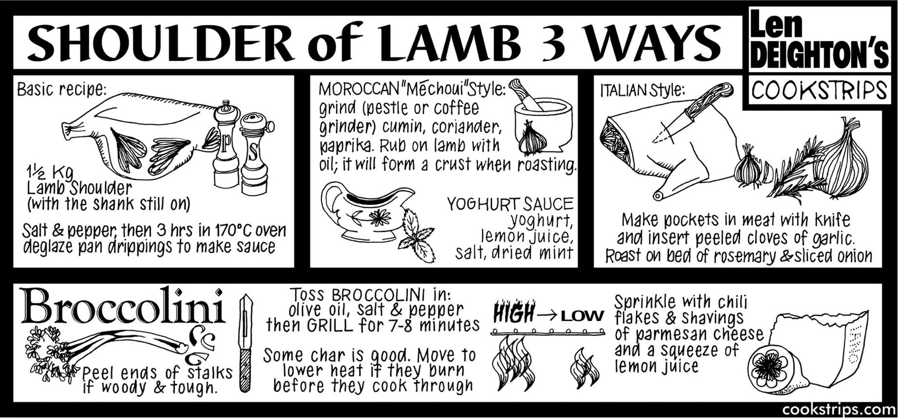 Cookstrips by Len Deighton. I remember reading his spy novels as a kid, had no idea about his history as an illustrator and food persona.