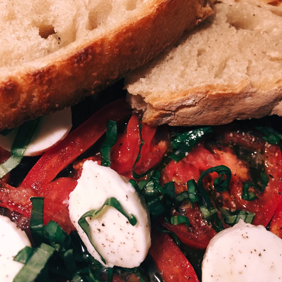 Fresh tomatoes, mozzarella, basil and olive oil, with homemade bread
